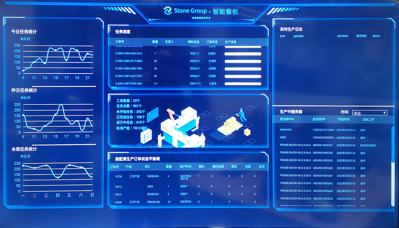 智能看板端是可以安装到智能电视上的APP终端,可以通过智能看板终端查看工厂实时生产数据。